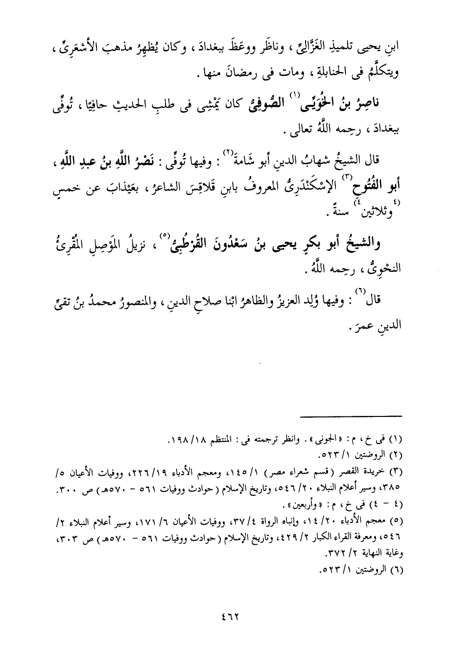 بْنِ يَحْيَى تِلْمِيذِ الْغَزَالِيِّ وَنَاظَرَ وَوَعَظَ بِبَغْدَادَ، وَكَانَ يُظْهِرُ مَذْهَبَ الْأَشْعَرِيِّ وَيَتَكَلَّمُ فِي الْحَنَابِلَةِ مَاتَ فِي رَمَضَانَ مِنْهَا