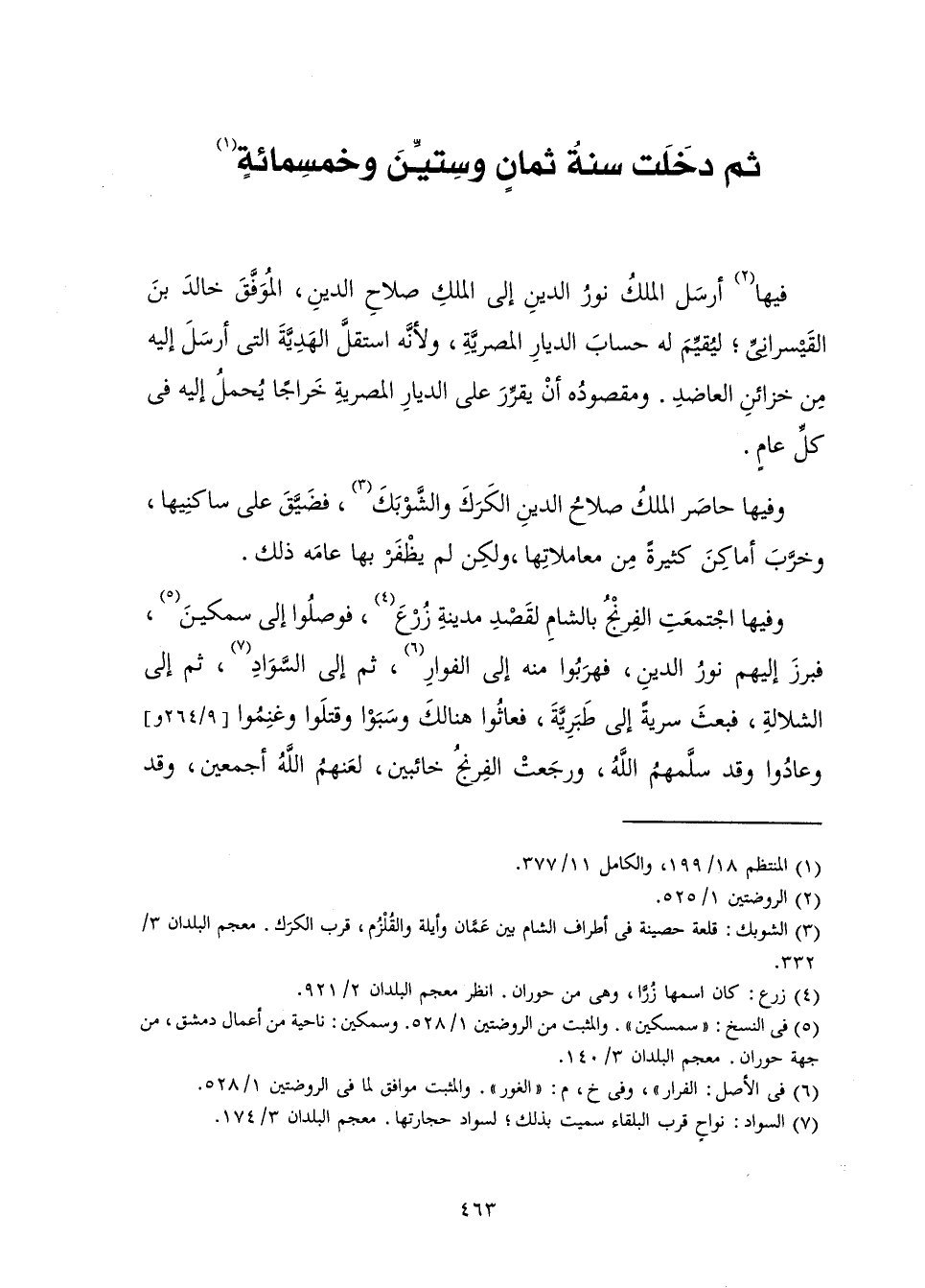 وَفِيهَا حَاصَرَ الْمَلِكُ صَلَاحُ الدِّينِ الْكَرَكَ وَالشُّوبَكَ، فَضَيَّقَ عَلَى سَاكِنِيهَا وَخَرَّبَ أَمَاكِنَ كَثِيرَةً مِنْ مُعَامَلَاتِهَا، وَلَكِنْ لَمْ يَظْفَرْ بِهَا عَامَهُ ذَلِكَ.