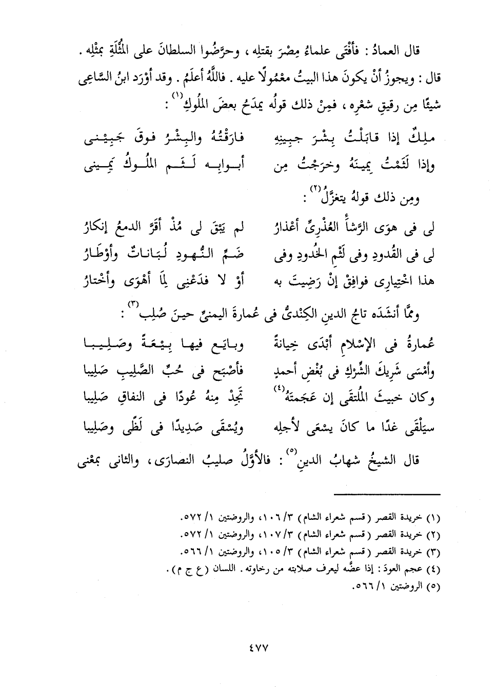 عُمَارَةُ فِي الْإِسْلَامِ أَبْدَى خِيَانَةً ... وَبَايَعَ فِيهَا بَيْعَةً وَصَلِيبَا
