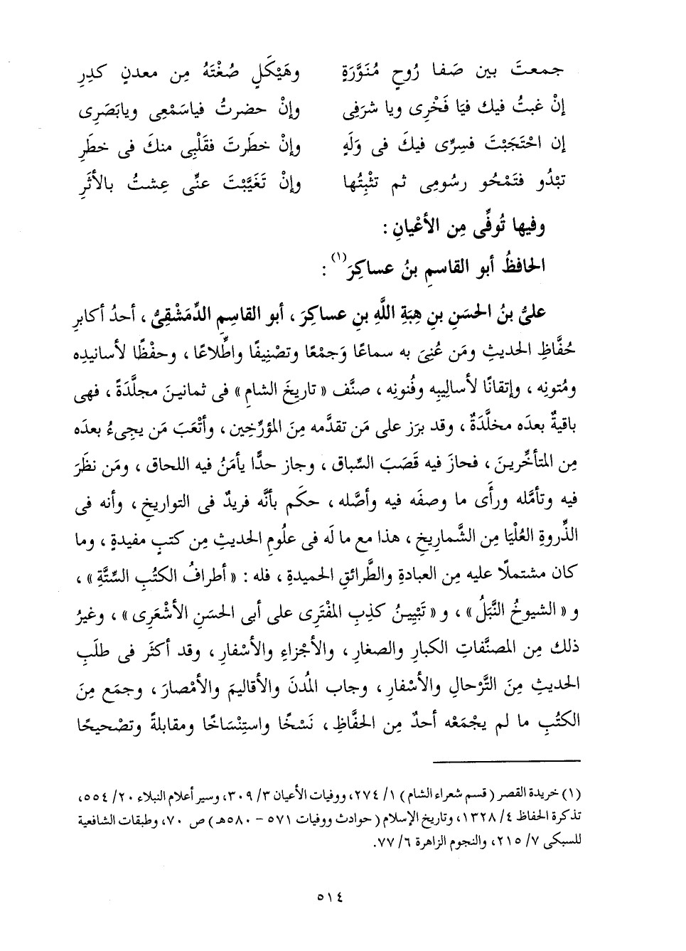 الْحَافِظُ أَبُو الْقَاسِمِ بْنُ عَسَاكِرَ عَلِيُّ بْنُ الْحَسَنِ بْنِ هِبَةِ اللَّهِ بْنِ عَسَاكِرَ أَبُو الْقَاسِمِ الدِّمَشْقِيُّ