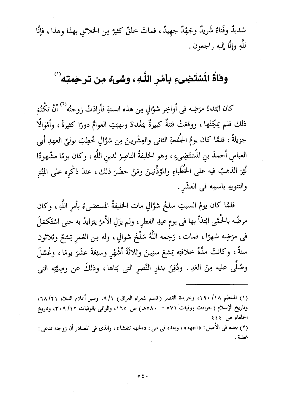 وَفَاةُ الْمُسْتَضِيءِ بِأَمْرِ اللَّهِ وَشَيْءٌ مِنْ تَرْجَمَتِهِ