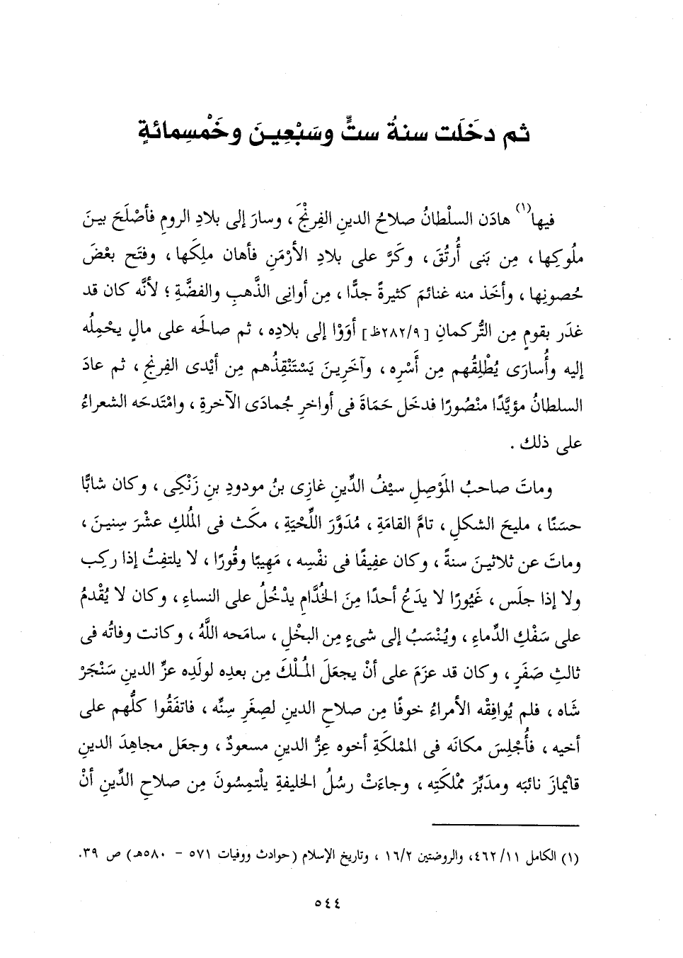 [ثُمَّ دَخَلَتْ سَنَةُ سِتٍّ وَسَبْعِينَ وَخَمْسِمِائَةٍ]