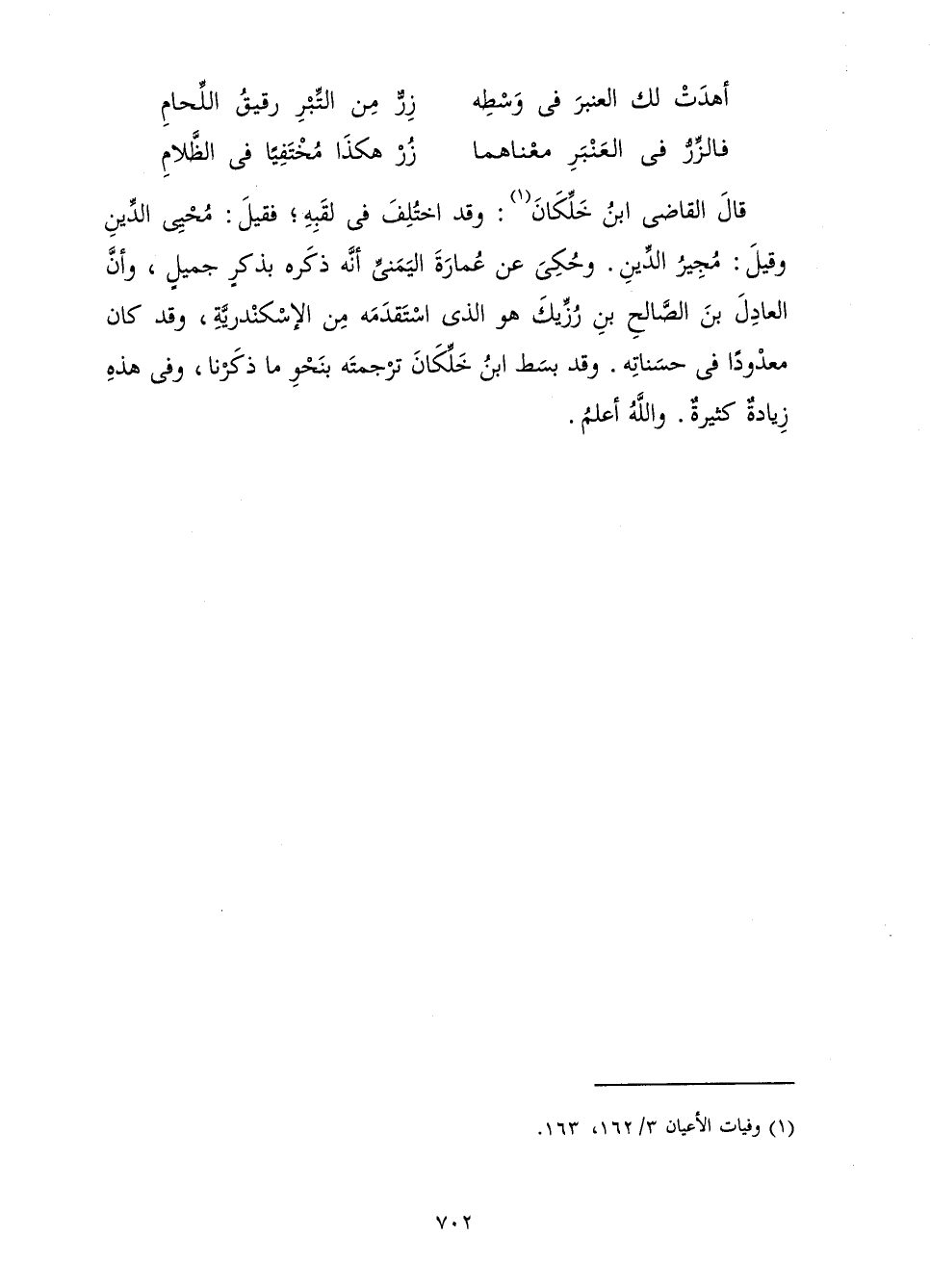 قَالَ الْقَاضِي ابْنُ خَلِّكَانَ وِقَدِ اخْتُلِفَ فِي لَقَبِهِ، فَقِيلَ: مُحْيِي الدِّينِ، وَقِيلَ: مُجِيرُ الدِّينِ. وَحُكِيَ عَنْ عُمَارَةَ الْيَمَنِيِّ أَنَّهُ ذَكَرَهُ بِذِكْرٍ جَمِيلٍ، وَأَنَّ الْعَادِلَ بْنَ الصَّالِحِ بْنِ رُزِّيكَ هُوَ الَّذِي اسْتَقْدَمَهُ مِنَ الْإِسْكَنْدَرِيَّةِ، وَقَدْ كَانَ مَعْدُودًا فِي حَسَنَاتِهِ. وَقَدْ بَسَطَ ابْنُ خَلِّكَانَ تَرْجَمَتَهُ بِنَحْوِ مَا ذَكَرْنَا، وَفِي هَذِهِ زِيَادَةٌ كَثِيرَةٌ. وَاللَّهُ أَعْلَمُ.