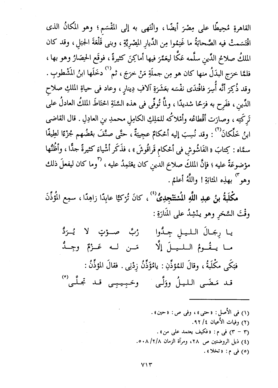 الْقَاهِرَةِ مُحِيطًا عَلَى مِصْرَ أَيْضًا، وَانْتَهَى إِلَى الْمَقْسَمِ ; وَهُوَ الْمَكَانُ الَّذِي اقْتَسَمَتْ فِيهِ الصَّحَابَةُ مَا غَنِمُوا مِنَ الدِّيَارِ الْمِصْرِيَّةِ، وَبَنَى قَلْعَةَ الْجَبَلِ، وَقَدْ كَانَ الْمَلِكُ صَلَاحُ الدِّينِ سَلَّمَهُ عَكَّا لِيُعَمِّرَ فِيهَا أَمَاكِنَ كَثِيرَةً، فَوَقَعَ الْحِصَارُ وَهُوَ بِهَا، فَلَمَّا خَرَجَ الْبَدَلُ مِنْهَا كَانَ هُوَ مِنْ جُمْلَةِ مَنْ خَرَجَ، ثُمَّ دَخَلَهَا ابْنُ الْمَشْطُوبِ. وَقَدْ ذُكِرَ أَنَّهُ أُسِرَ فَافْتَدَى نَفْسَهُ بِعَشَرَةِ آلَافِ دِينَارٍ، وَعَادَ إِلَى صَلَاحِ الدِّينِ فَفَرِحَ بِهِ فَرَحًا شَدِيدًا، وَلَمَّا تُوُفِّيَ فِي هَذِهِ السَّنَةِ احْتَاطَ الْعَادِلُ عَلَى تَرِكَتِهِ وَصَارَتْ أَقْطَاعُهُ وَأَمْلَاكُهُ لِلْمَلِكِ الْكَامِلِ مُحَمَّدِ بْنِ الْعَادِلِ. قَالَ الْقَاضِي ابْنُ خَلِّكَانَ: وَقَدْ نُسِبَ إِلَيْهِ أَحْكَامٌ عَجِيبَةٌ، حَتَّى صَنَّفَ بَعْضُهُمْ جُزْءًا لَطِيفًا سَمَّاهُ: كِتَابَ " الْفَاشُوشِ فِي أَحْكَامِ قَرَاقُوشَ " فَذَكَرَ أَشْيَاءَ كَثِيرَةً جِدًّا وَأَظُنُّهَا مَوْضُوعَةً عَلَيْهِ ; فَإِنَّ الْمَلِكَ صَلَاحَ الدِّينِ كَانَ يَعْتَمِدُ عَلَيْهِ، وَمَا كَانَ لِيَفْعَلَ ذَلِكَ وَهُوَ بِهَذِهِ الْمَثَابَةِ! وَاللَّهُ أَعْلَمُ.