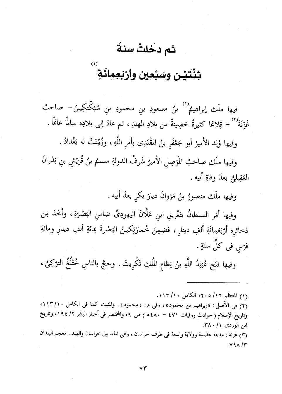 [ثُمَّ دَخَلَتْ سَنَةُ ثِنْتَيْنِ وَسَبْعِينَ وَأَرْبَعِمِائَةٍ]