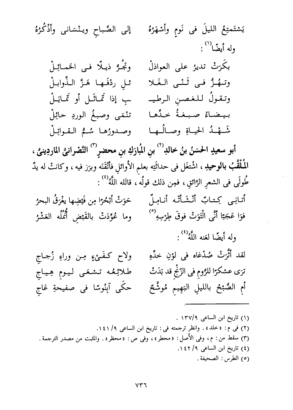 أَبُو سَعِيدٍ الْحَسَنُ بْنُ خَالِدِ بْنِ الْمُبَارَكِ بْنِ مَحْضَرٍ النَّصْرَانِيُّ الْمَارَدِينِيُّ، الْمُلَقَّبُ بِالْوَحِيدِ.