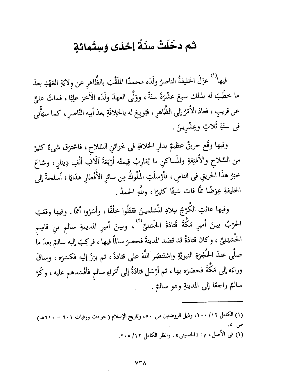 [ثُمَّ دَخَلَتْ سَنَةُ إِحْدَى وَسِتِّمِائَةٍ]
