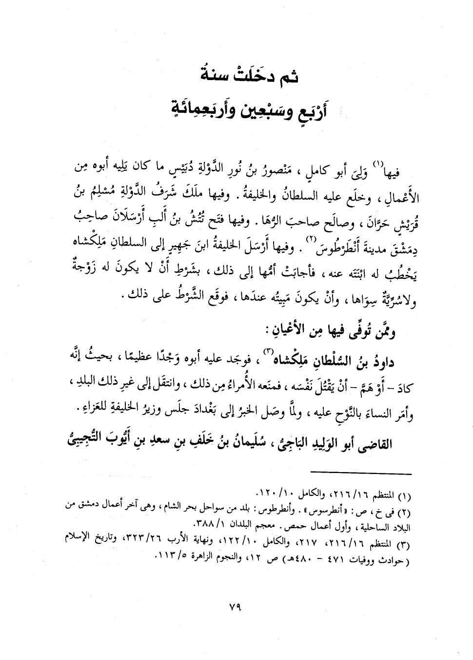 [ثُمَّ دَخَلَتْ سَنَةُ أَرْبَعٍ وَسَبْعِينَ وَأَرْبَعِمِائَةٍ]