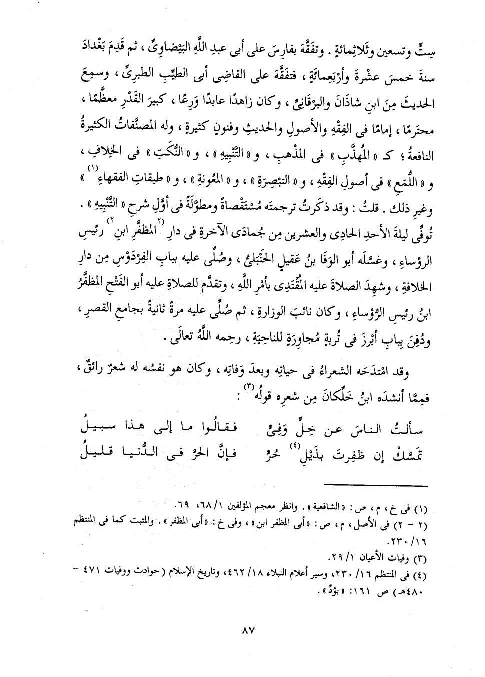 تَمَسَّكْ إِنْ ظَفِرْتَ بِذَيْلِ حُرٍّ ... فَإِنَّ الْحُرَّ فِي الدُّنْيَا قَلِيلُ