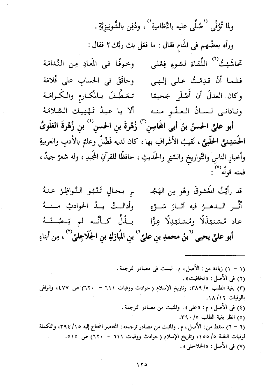 أَبُو عَلِيٍّ الْحَسَنُ بْنُ أَبِي الْمَحَاسِنِ زُهْرَةَ بْنِ الْحَسَنِ بْنِ زُهْرَةَ الْعَلَوِيُّ الْحُسَيْنِيُّ الْحَلَبِيُّ، نَقِيبُ الْأَشْرَافِ بِهَا، كَانَ لَدَيْهِ فَضْلٌ وَعِلْمٌ بِالْأَدَبِ وَالْعَرَبِيَّةِ، وَأَخْبَارِ النَّاسِ وَالتَّوَارِيخِ وَالسِّيَرِ وَالْحَدِيثِ، حَافِظًا لِلْقُرْآنِ الْمَجِيدِ، وَلَهُ شِعْرٌ جَيِّدٌ، فَمِنْهُ قَوْلُهُ: