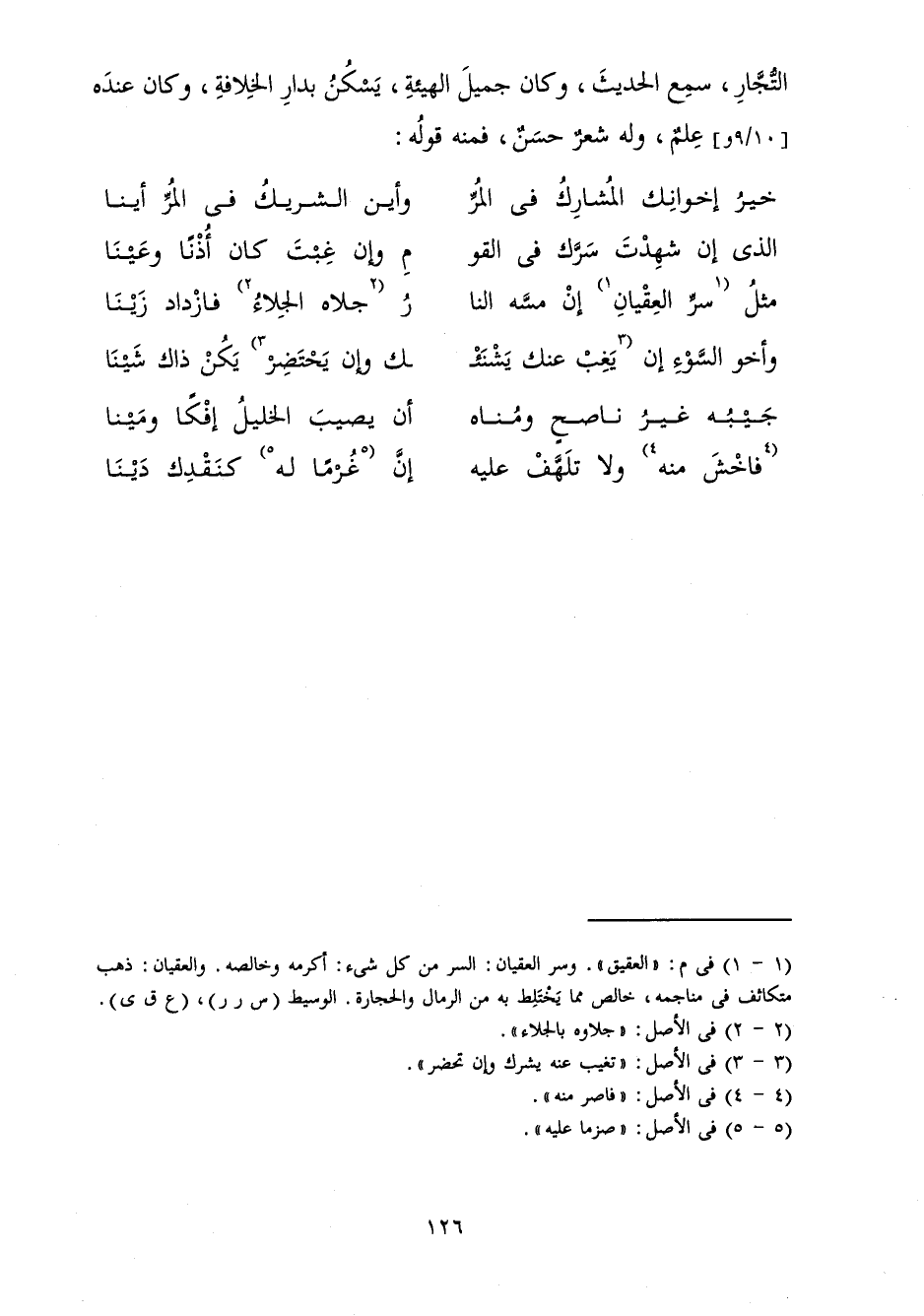 الَّذِي إِنْ شَهِدْتَ سَرَّكَ فِي الْقَوْ ... مِ وَإِنْ غِبْتَ كَانَ أُذْنًا وَعَيْنَا