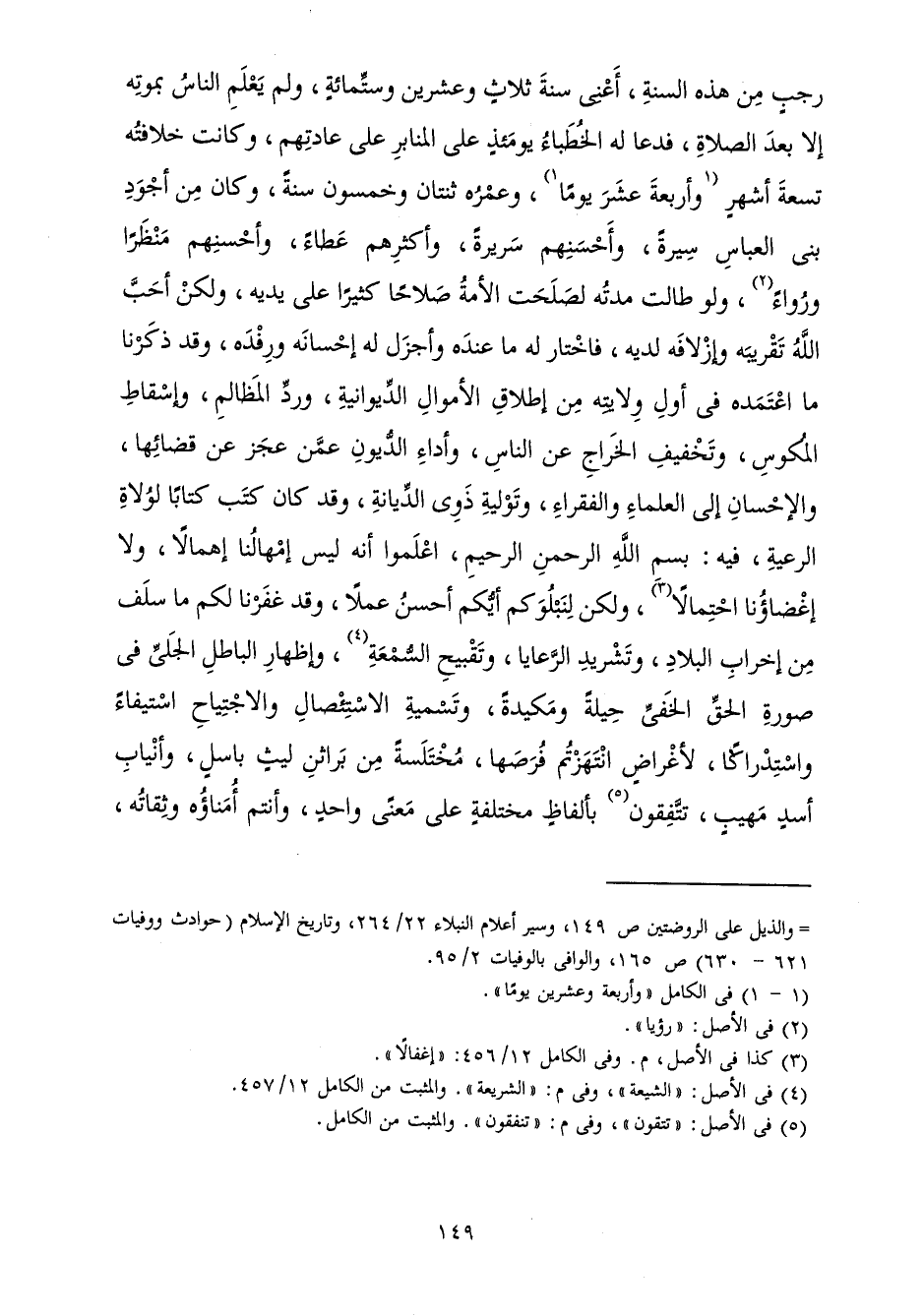 بِسْمِ اللَّهِ الرَّحْمَنِ الرَّحِيمِ، اعْلَمُوا أَنَّهُ لَيْسَ إِمْهَالُنَا إِهْمَالًا، وَلَا إِغْضَاؤُنَا احْتِمَالًا، وَلَكِنْ لَنَبْلُوَكُمْ أَيُّكُمْ أَحْسَنُ عَمَلًا، وَقَدْ غَفَرْنَا لَكُمْ مَا سَلَفَ مِنْ إِخْرَابِ الْبِلَادِ، وَتَشْرِيدِ الرَّعَايَا، وَتَقْبِيحِ الشَّرِيعَةِ، وَإِظْهَارِ الْبَاطِلِ الْجَلِيِّ فِي صُورَةِ الْحَقِّ الْخَفِيِّ حِيلَةً وَمَكِيدَةً، وَتَسْمِيَةِ الِاسْتِئْصَالِ وَالِاجْتِيَاحِ اسْتِيفَاءً وَاسْتِدْرَاكًا، لِأَغْرَاضٍ انْتَهَزْتُمْ فُرَصَهَا، مُخْتَلَسَةً مِنْ بَرَاثِنِ لَيْثٍ بَاسِلٍ، وَأَنْيَابِ أَسَدٍ مَهِيبٍ، تُنْفِقُونَ بِأَلْفَاظٍ مُخْتَلِفَةٍ عَلَى مَعْنًى وَاحِدٍ، وَأَنْتُمْ أُمَنَاؤُهُ وَثِقَاتُهُ،