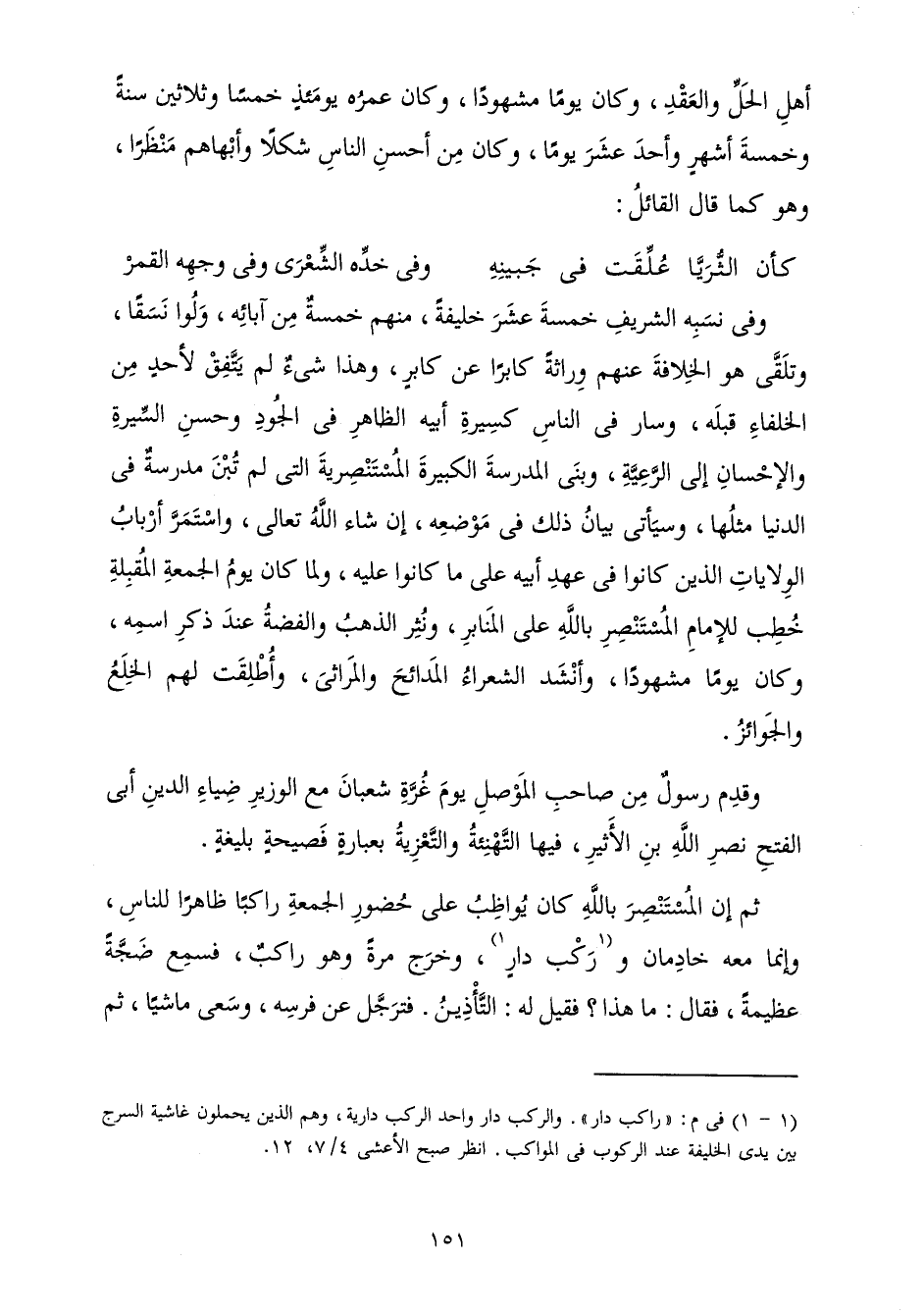 أَهْلِ الْحَلِّ وَالْعَقْدِ وَكَانَ يَوْمًا مَشْهُودًا، وَكَانَ عُمْرُهُ يَوْمَئِذٍ خَمْسًا وَثَلَاثِينَ سَنَةً وَخَمْسَةَ أَشْهُرٍ وَأَحَدَ عَشَرَ يَوْمًا، وَكَانَ مِنْ أَحْسَنِ النَّاسِ شَكْلًا وَأَبْهَاهُمْ مَنْظَرًا، وَهُوَ كَمَا قَالَ الْقَائِلُ: