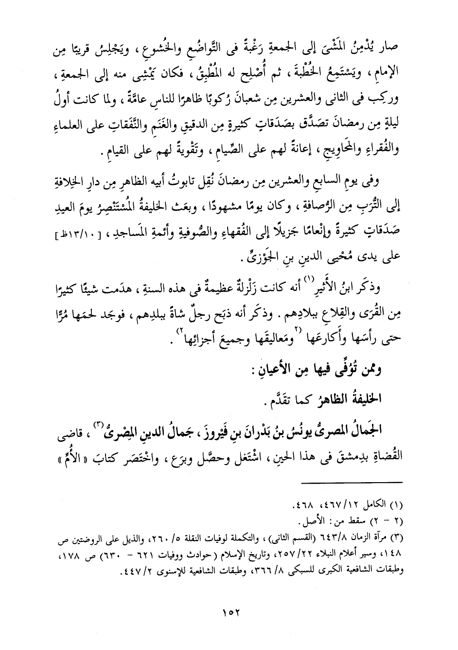 الْجَمَالُ الْمِصْرِيُّ يُونُسُ بْنُ بَدْرَانَ بْنِ فَيْرُوزَ، جَمَالُ الدِّينِ الْمِصْرِيُّ، قَاضِي الْقُضَاةِ بِدِمَشْقَ فِي هَذَا الْحِينِ، اشْتَغَلَ وَحَصَّلَ وَبَرَعَ، وَاخْتَصَرَ كِتَابَ " الْأُمِّ "