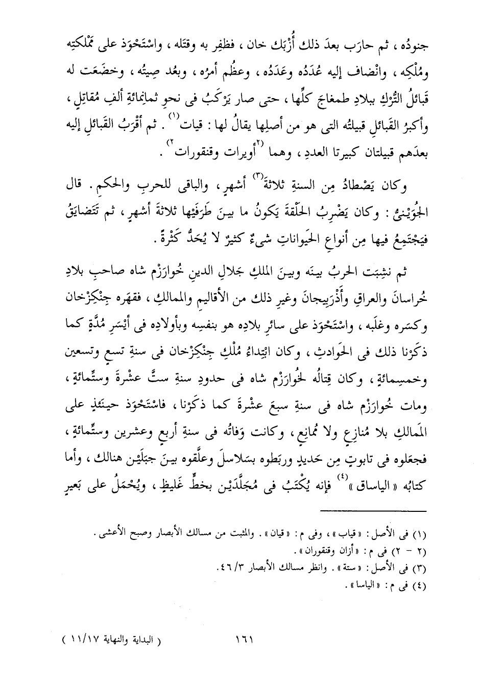 جُنُودُهُ، ثُمَّ حَارَبَ بَعْدَ ذَلِكَ أُزْبَكْ خَانَ، فَظَفَرَ بِهِ وَقَتَلَهُ، وَاسْتَحْوَذَ عَلَى مَمْلَكَتِهِ وَمُلْكِهِ، وَانْضَافَ إِلَيْهِ عَدَدُهُ وَعُدَدُهُ، وَعَظُمَ أَمْرُهُ، وَبَعُدَ صِيتُهُ، وَخَضَعَتْ لَهُ قَبَائِلُ التُّرْكِ بِبِلَادِ طَمْغَاجَ كُلِّهَا، حَتَّى صَارَ يَرْكَبُ فِي نَحْوِ ثَمَانِمِائَةِ أَلْفِ مُقَاتِلٍ، وَأَكْثَرُ الْقَبَائِلِ قَبِيلَتُهُ الَّتِي هُوَ مِنْ أَصْلِهَا يُقَالُ لَهَا: قِيَّاتُ. ثُمَّ أَقْرَبُ الْقَبَائِلِ إِلَيْهِ بَعْدَهُمْ قَبِيلَتَانِ كَبِيرَتَا الْعَدَدِ، وَهُمَا أَوَيْرَاتُ وَقَنْقُورَاتُ.