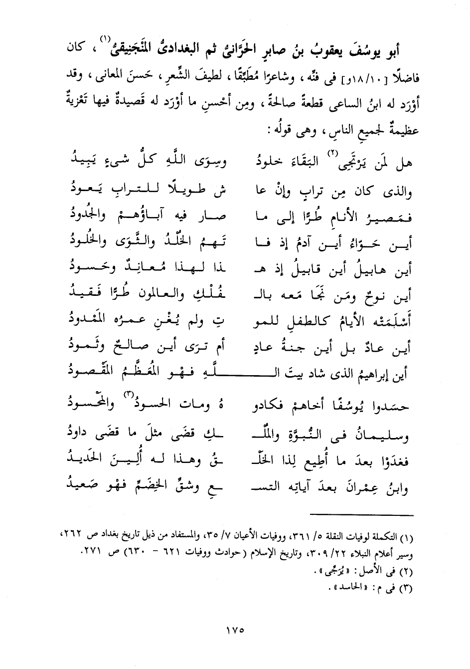 هَلْ لِمَنْ يَرْتَجِي الْبَقَاءَ خُلُودُ ... وَسِوَى اللَّهِ كُلُّ شَيْءٍ يَبِيدُ