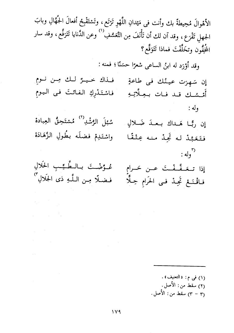 الْأَهْوَالَ مُحِيطَةً بِكَ وَأَنْتَ فِي مَيْدَانِ اللَّهْوِ تَرْتَعُ، وَتَسْتَقْبِحُ أَفْعَالَ الْجُهَّالِ وَبَابَ الْجَهْلِ تَقْرَعُ، وَقَدْ آنَ لَكَ أَنْ تَأْنَفَ مِنَ التَّعَسُّفِ، وَعَنِ الدَّنَايَا تَتَرَفَّعُ، وَقَدْ سَارَ الْمُخِفُّونَ وَتَخَلَّفْتَ فَمَاذَا تَتَوَقَّعُ؟