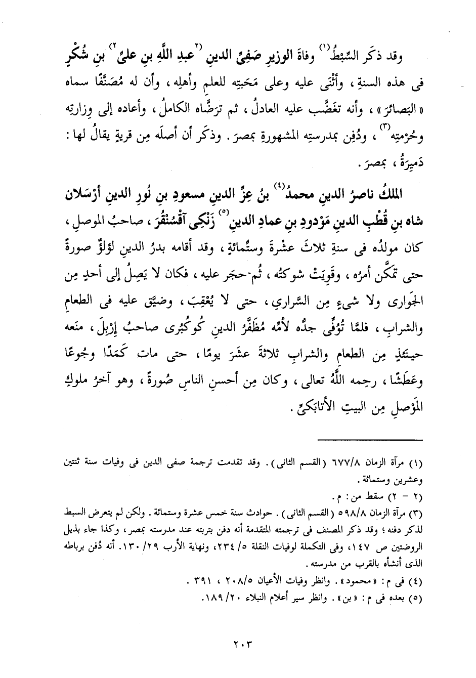 وَقَدْ ذَكَرَ السِّبْطُ وَفَاةَ الْوَزِيرِ صَفِيِّ الدِّينِ عَبْدِ اللَّهِ بْنِ عَلِيِّ بْنِ شُكْرٍ