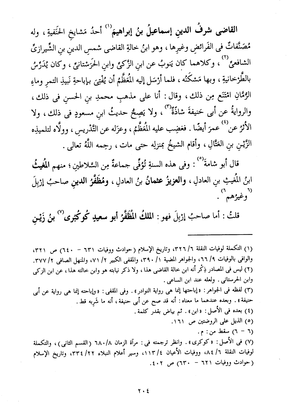 قَالَ أَبُو شَامَةَ: وَفِي هَذِهِ السَّنَةِ تُوُفِّيَ جَمَاعَةٌ مِنَ السَّلَاطِينِ; مِنْهُمُ الْمُغِيثُ بْنُ الْمُغِيثِ بْنِ الْعَادِلِ، وَالْعَزِيزُ عُثْمَانُ بْنُ الْعَادِلِ، وَمُظَفَّرُ الدِّينِ صَاحِبُ إِرْبِلَ وَغَيْرُهُمْ. قُلْتُ: أَمَّا صَاحِبُ إِرْبِلَ فَهُوَ: