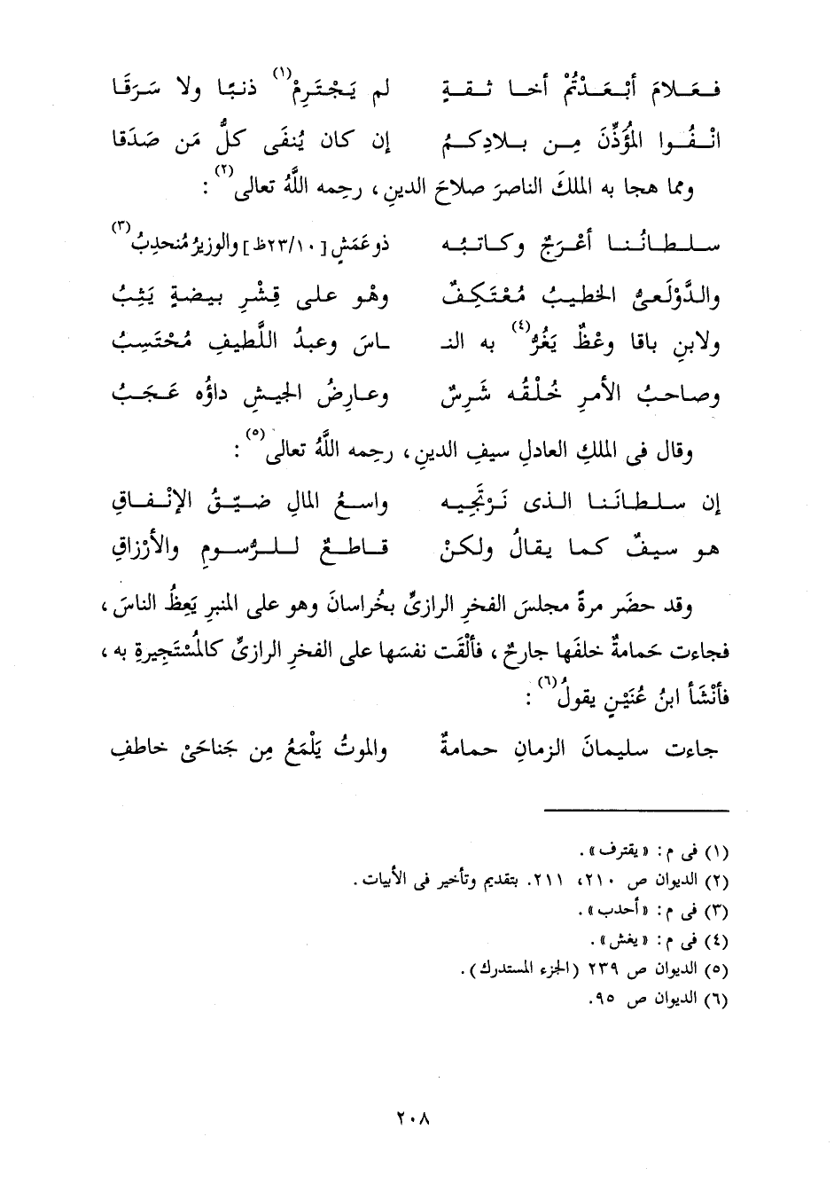 وَمِمَّا هَجَا بِهِ الْمَلِكَ النَّاصِرَ صَلَاحَ الدِّينِ، رَحِمَهُ اللَّهُ تَعَالَى: