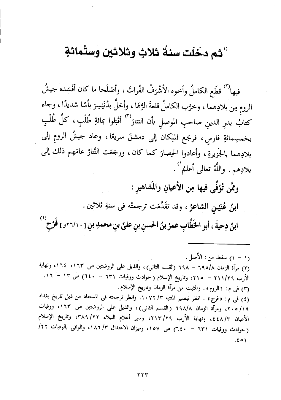 [ثُمَّ دَخَلَتْ سَنَةُ ثَلَاثٍ وَثَلَاثِينَ وَسِتِّمِائَةٍ]