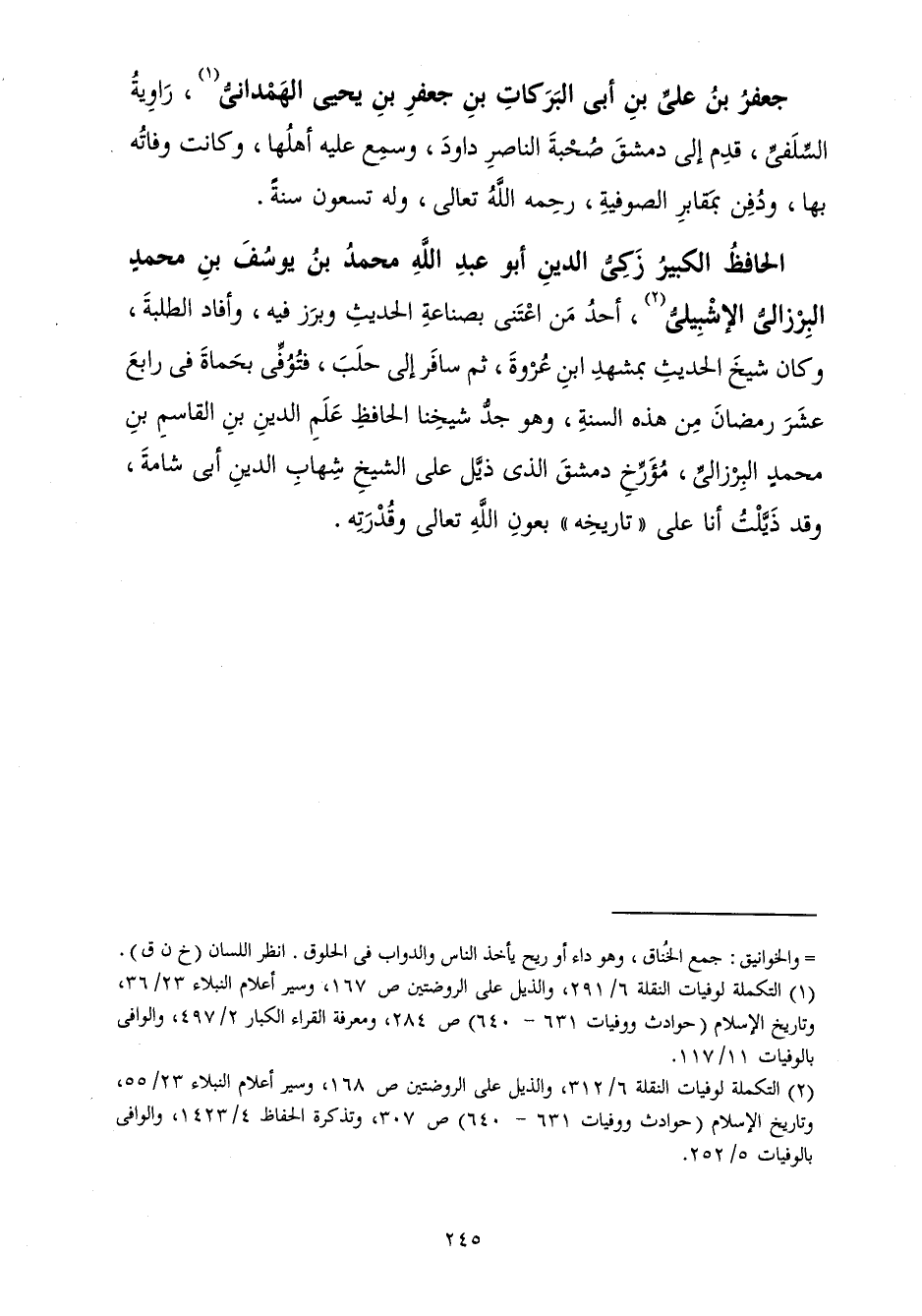 الْحَافِظُ الْكَبِيرُ زَكِّيُّ الدِّينِ، أَبُو عَبْدِ اللَّهِ مُحَمَّدُ بْنُ يُوسُفَ بْنِ مُحَمَّدِ الْبِرْزَالِيُّ الْإِشْبِيلِيُّ، أَحَدُ مَنِ اعْتَنَى بِصِنَاعَةِ الْحَدِيثِ وَبَرَزَ فِيهِ، وَأَفَادَ الطَّلَبَةَ، وَكَانَ شَيْخَ الْحَدِيثِ بِمَشْهَدِ ابْنِ عُرْوَةَ، ثُمَّ سَافَرَ إِلَى حَلَبَ، فَتُوُفِّيَ بِحَمَاةَ فِي رَابِعَ عَشَرَ رَمَضَانَ مِنْ هَذِهِ السَّنَةِ، وَهُوَ جَدُّ شَيْخِنَا الْحَافِظِ عَلَمِ الدِّينِ بْنِ الْقَاسِمِ بْنِ مُحَمَّدٍ الْبِرْزَالِيِّ، مُؤَرِّخِ دِمَشْقَ الَّذِي ذَيَّلَ عَلَى الشَّيْخِ شِهَابِ الدِّينِ أَبِي شَامَةَ، وَقَدْ ذَيَّلْتُ أَنَا عَلَى تَارِيخِهِ بِعَوْنِ اللَّهِ تَعَالَى وَقُدْرَتِهِ.