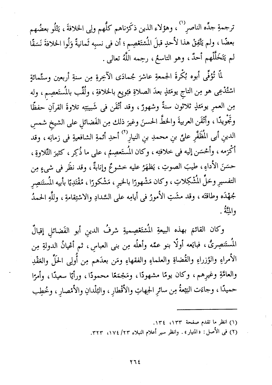تَرْجَمَةِ جَدِّهِ النَّاصِرِ، وَهَؤُلَاءِ الَّذِينَ ذَكَرْنَاهُمْ كُلُّهُمْ وَلِيَ الْخِلَافَةَ، يَتْلُو بَعْضُهُمْ بَعْضًا، وَلَمْ يَتَّفِقْ هَذَا لِأَحَدٍ قَبْلَ الْمُسْتَعْصِمِ; أَنَّ فِي نَسَبِهِ ثَمَانِيَةً وَلُوا الْخِلَافَةَ نَسَقًا لَمْ يَتَخَلَّلْهُمْ أَحَدٌ، وَهُوَ التَّاسِعُ، رَحِمَهُ اللَّهُ تَعَالَى.