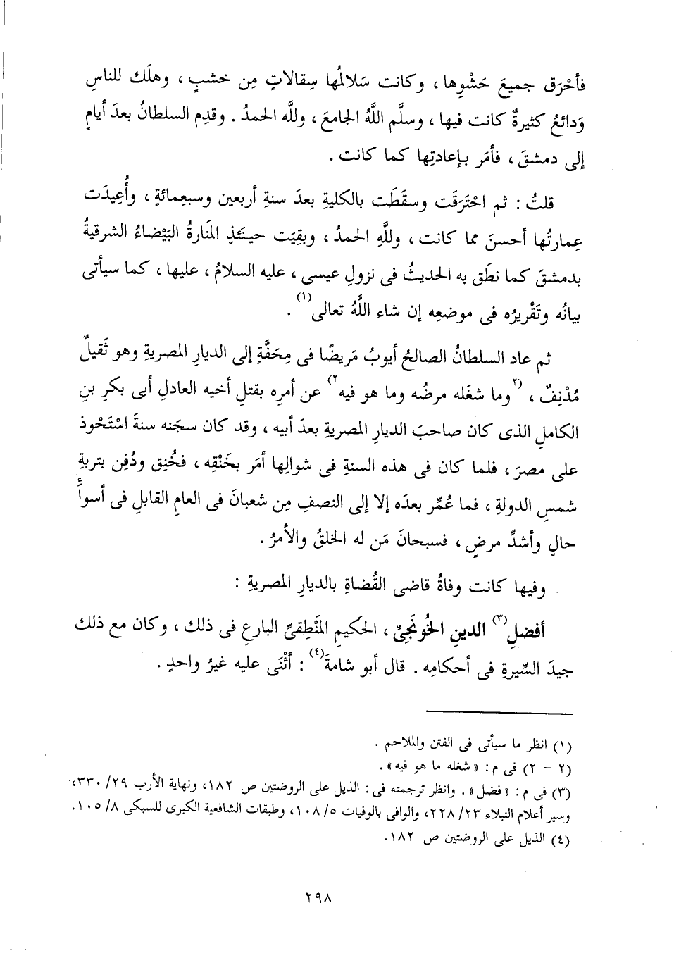 وَفِيهَا كَانَتْ وَفَاةُ قَاضِي الْقُضَاةِ بِالدِّيَارِ الْمِصْرِيَّةِ أَفْضَلِ الدِّينِ الْخُونَجِيِّ