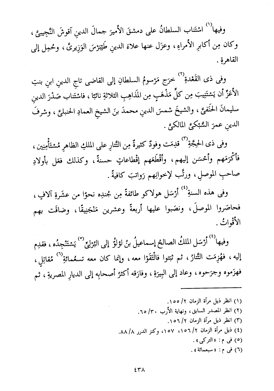 وَفِيهَا أَرْسَلَ الْمَلِكُ الصَّالِحُ إِسْمَاعِيلُ بْنُ لُؤْلُؤٍ إِلَى الْبُرْلِيِّ يَسْتَنْجِدُهُ، فَقَدِمَ إِلَيْهِ فَهُزِمَتِ التَّتَارُ، ثُمَّ ثَبَتُوا فَالْتَقَوْا مَعَهُ، وَإِنَّمَا كَانَ مَعَهُ تِسْعُمِائَةِ مُقَاتِلٍ، فَهَزَمُوهُ وَجَرَحُوهُ، وَعَادَ إِلَى الْبِيرَةِ، وَفَارَقَهُ أَكْثَرُ أَصْحَابِهِ إِلَى الدِّيَارِ الْمِصْرِيَّةِ، ثُمَّ
