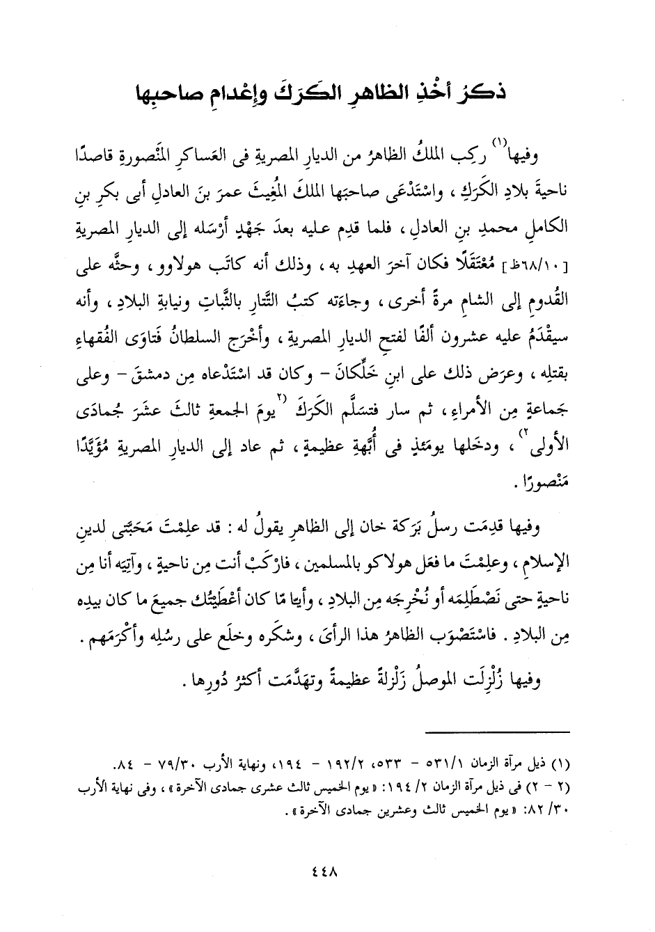 [ذِكْرُ أَخْذِ الظَّاهِرِ الْكَرَكَ وَإِعْدَامِ صَاحِبِهَا]