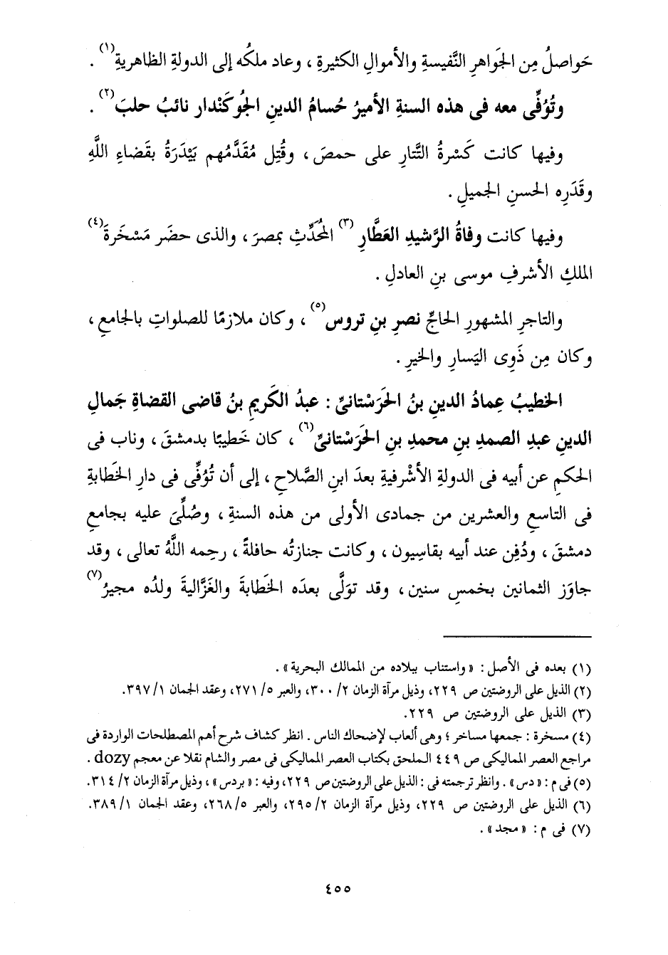 وَتُوُفِّيَ مَعَهُ فِي هَذِهِ السَّنَةِ الْأَمِيرُ حُسَامُ الدِّينِ الْجُوكَنْدَارُ نَائِبُ حَلَبَ.
