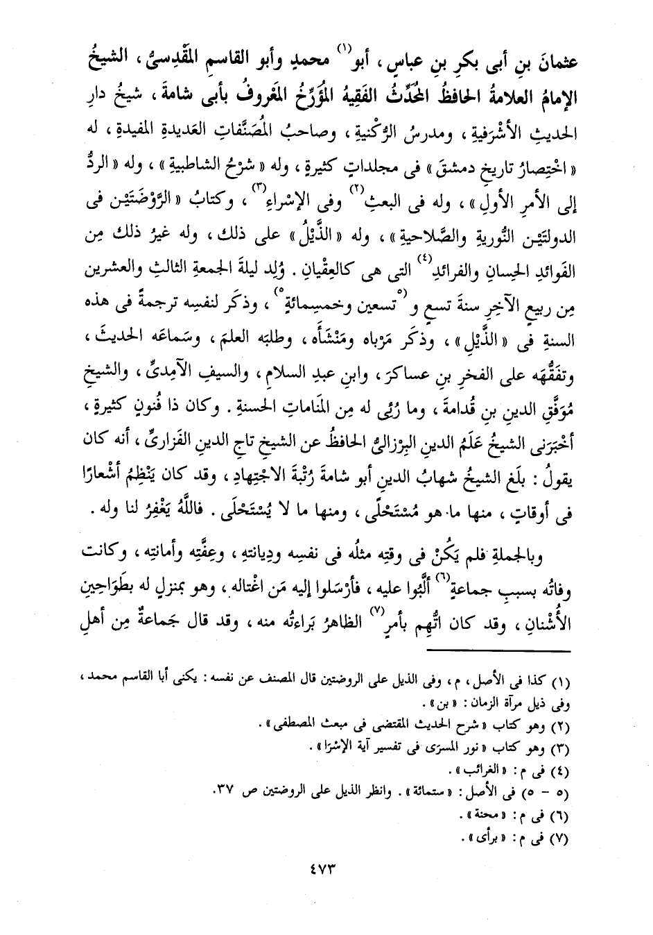 عُثْمَانَ بْنِ أَبِي بَكْرِ بْنِ عَبَّاسٍ، أَبُو مُحَمَّدٍ وَأَبُو الْقَاسِمِ الْمَقْدِسِيُّ، الشَّيْخُ الْإِمَامُ الْعَلَّامَةُ الْحَافِظُ الْمُحَدِّثُ الْفَقِيهُ الْمُؤَرِّخُ الْمَعْرُوفُ بِأَبِي شَامَةَ