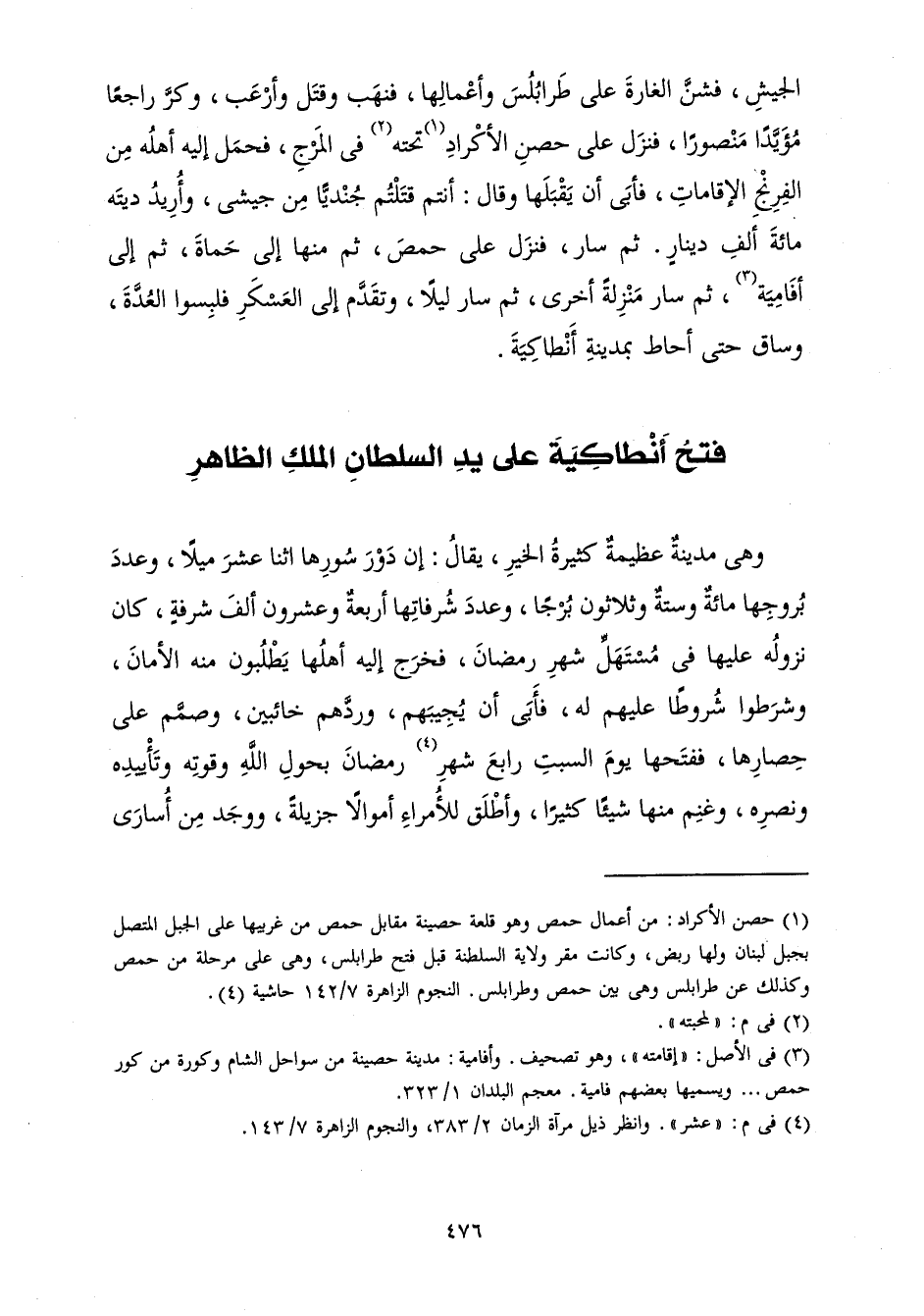 [فَتَحُ أَنْطَاكِيَةَ عَلَى يَدِ السُّلْطَانِ الْمَلِكِ الظَّاهِرِ]
