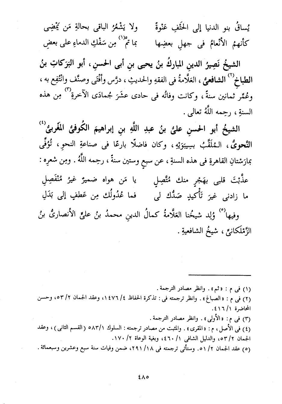 الشَّيْخُ نَصِيرُ الدِّينِ الْمُبَارَكُ بْنُ يَحْيَى بْنِ أَبِي الْحَسَنِ أَبُو الْبَرَكَاتِ بْنُ الطَّبَّاخِ الشَّافِعِيُّ