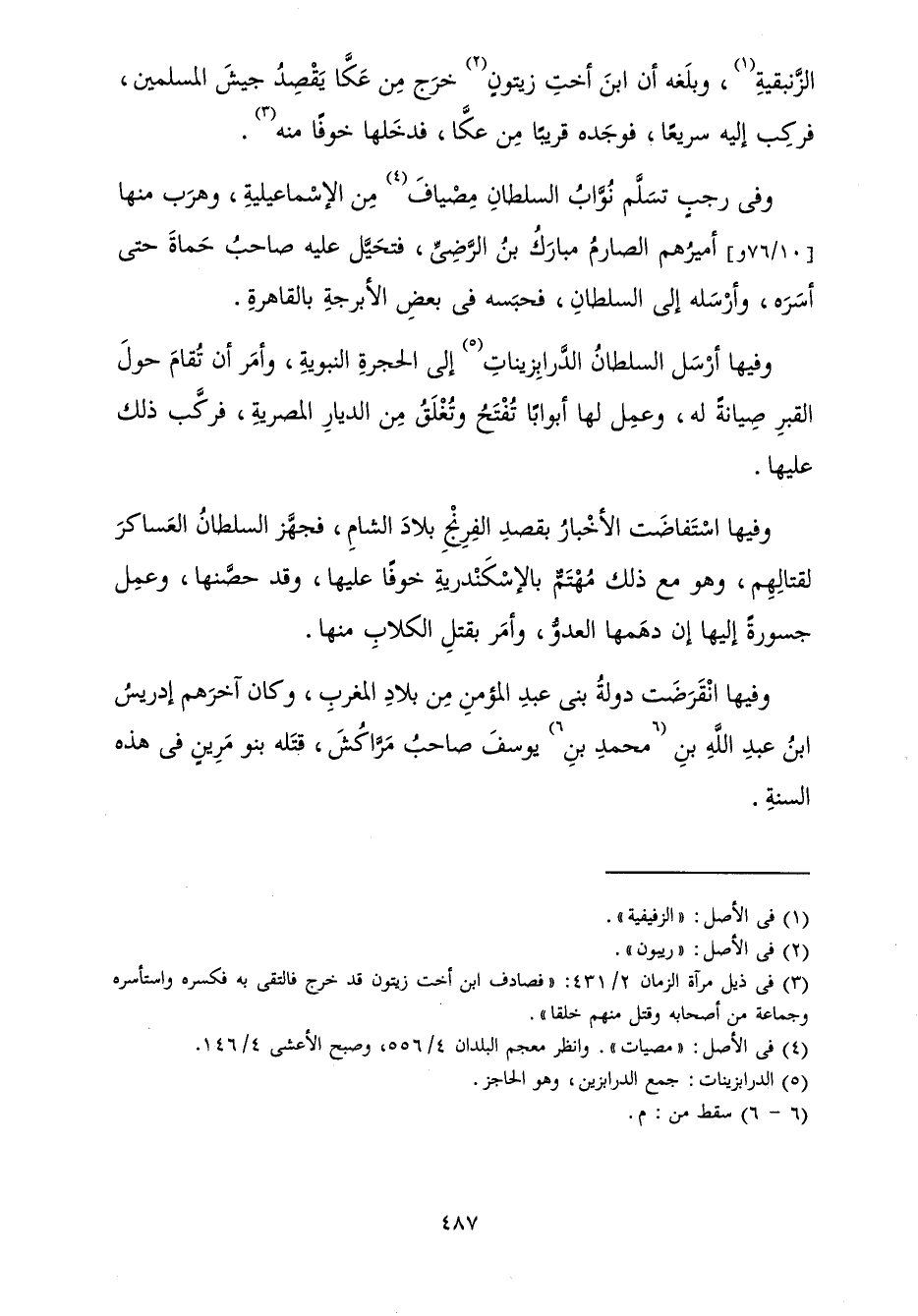 الزَّنْبَقِيَّةِ، وَبَلَغَهُ أَنَّ ابْنَ أُخْتِ زَيْتُونٍ خَرَجَ مِنْ عَكَّا يَقْصِدُ جَيْشَ الْمُسْلِمِينَ، فَرَكِبَ إِلَيْهِ سَرِيعًا، فَوَجَدَهُ قَرِيبًا مِنْ عَكَّا فَدَخَلَهَا خَوْفًا مِنْهُ.