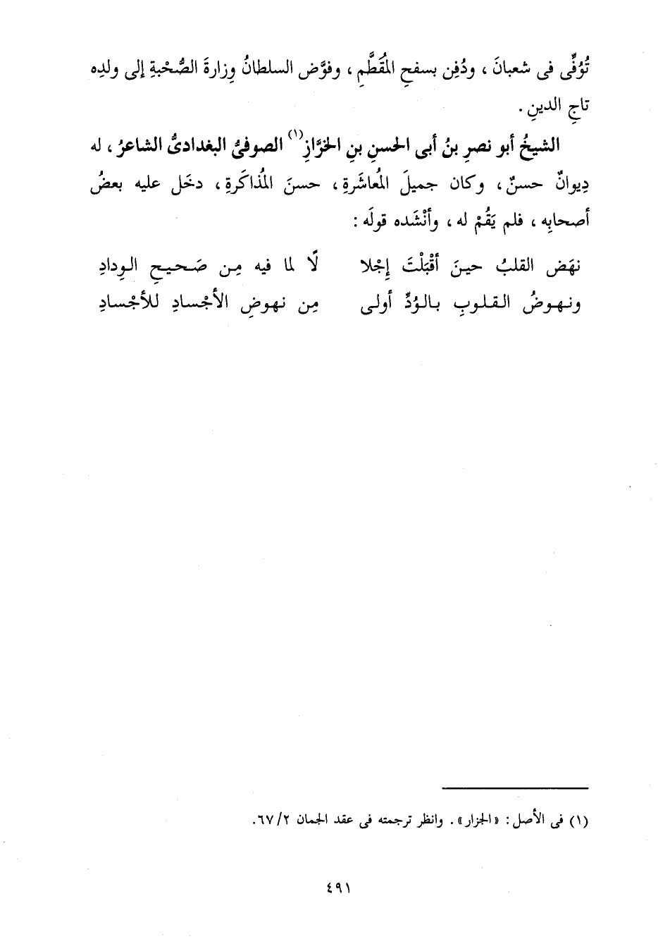 الشَّيْخُ أَبُو نَصْرِ بْنُ أَبِي الْحَسَنِ بْنِ الْخَرَّازِ الصُّوفِيُّ الْبَغْدَادِيُّ الشَّاعِرُ