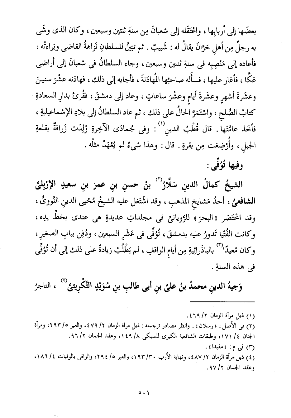 الشَّيْخُ كَمَالُ الدِّينِ سَلَّارُ بْنُ حَسَنِ بْنِ عُمَرَ بْنِ سَعِيدٍ الْإِرْبِلِيُّ الشَّافِعِيُّ
