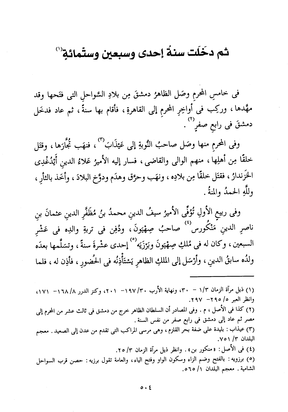 [ثُمَّ دَخَلَتْ سَنَةُ إِحْدَى وَسَبْعِينَ وَسِتِّمِائَةٍ]