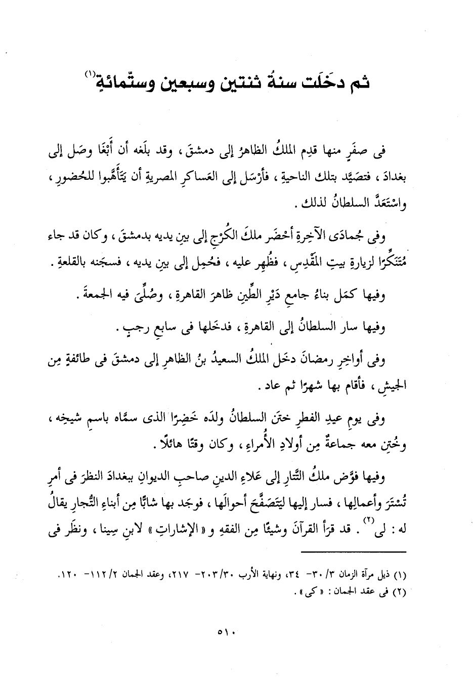 [ثُمَّ دَخَلَتْ سَنَةُ ثِنْتَيْنِ وَسَبْعِينَ وَسِتِّمِائَةٍ]