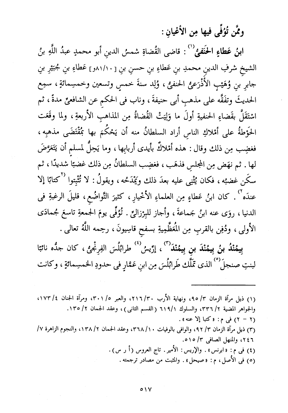 وَمِمَّنْ تُوُفِّيَ فِيهَا مِنَ الْأَعْيَانِ