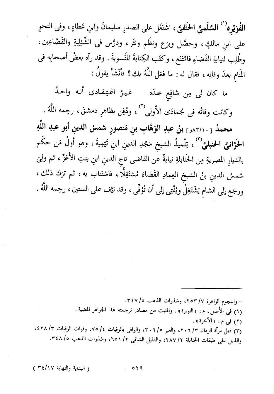 تِلْمِيذُ الشَّيْخِ مَجْدِ الدِّينِ ابْنِ تَيْمِيَّةَ، وَهُوَ أَوَّلُ مَنْ حَكَمَ بِالدِّيَارِ الْمِصْرِيَّةِ مِنَ الْحَنَابِلَةِ نِيَابَةً عَنِ الْقَاضِي تَاجِ الدِّينِ ابْنِ بِنْتِ الْأَعَزِّ، ثُمَّ وَلِيَ شَمْسُ الدِّينِ بْنُ الشَّيْخِ الْعِمَادِ الْقَضَاءَ مُسْتَقِلًّا، فَاسْتَنَابَ بِهِ، ثُمَّ تَرَكَ ذَلِكَ، وَرَجَعَ إِلَى الشَّامِ يَشْتَغِلُ وَيُفْتِي إِلَى أَنْ تُوُفِّيَ، وَقَدْ نَيَّفَ عَلَى السِّتِّينِ، رَحِمَهُ اللَّهُ.