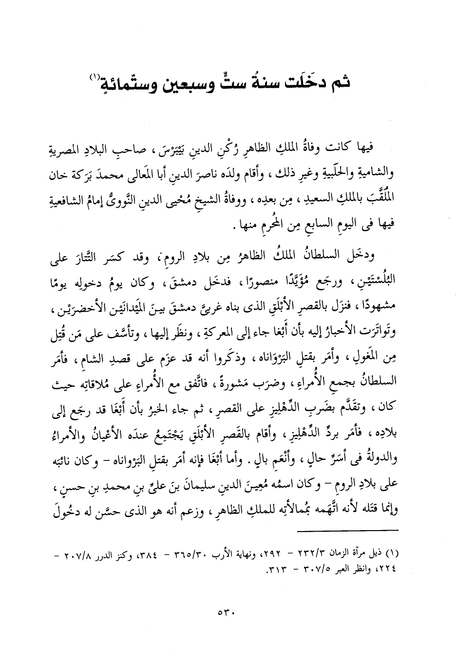 [ثُمَّ دَخَلَتْ سَنَةُ سِتٍّ وَسَبْعِينَ وَسِتِّمِائَةٍ]