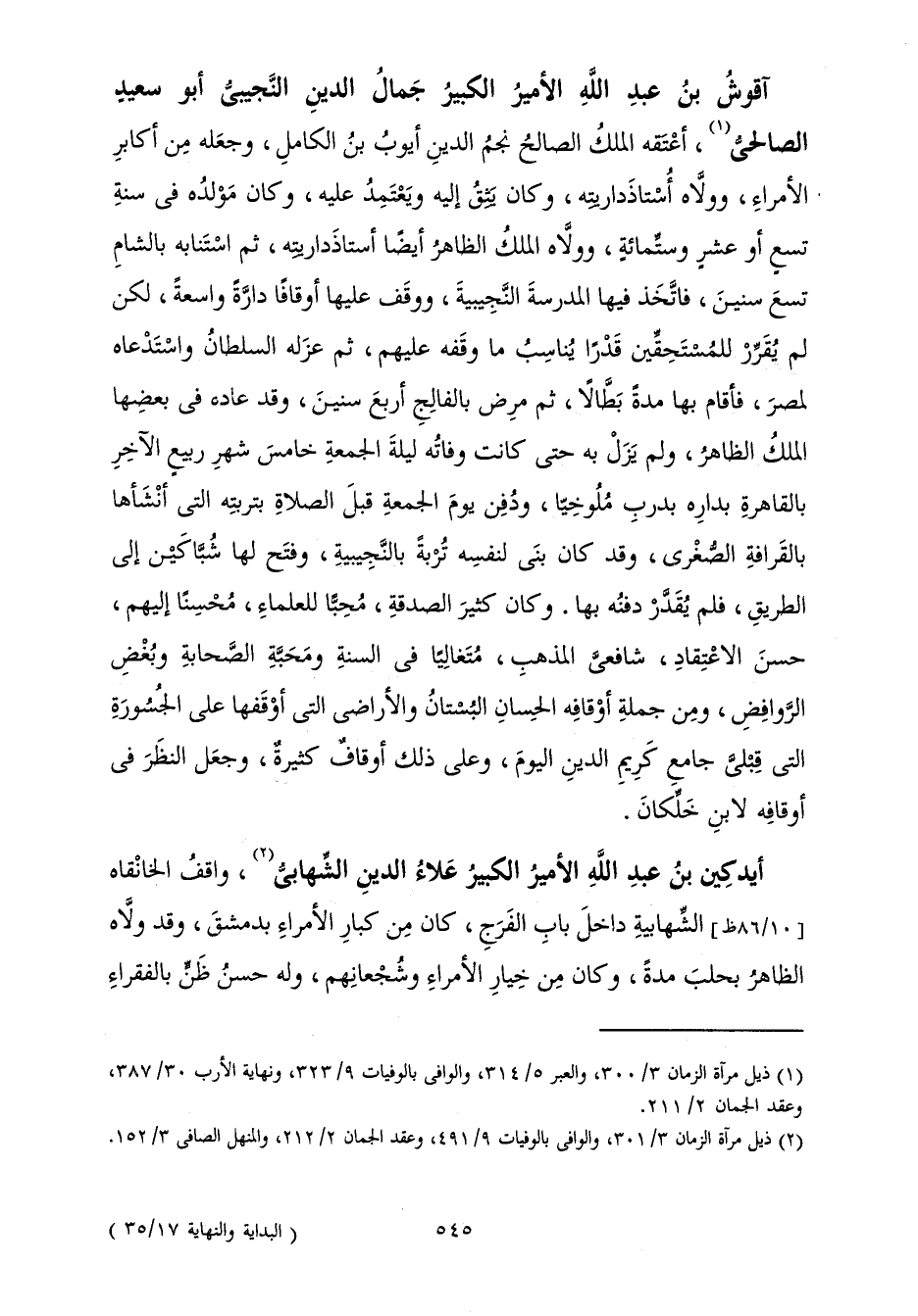 وَاقِفُ الْخَانْقَاهِ الشِّهَابِيَّةِ دَاخِلَ بَابِ الْفَرَجِ، كَانَ مِنْ كِبَارِ الْأُمَرَاءِ بِدِمَشْقَ، وَقَدْ وَلَّاهُ الظَّاهِرُ بِحَلَبَ مُدَّةً، وَكَانَ مِنْ خِيَارِ الْأُمَرَاءِ وَشُجْعَانِهِمْ، وَلَهُ حُسْنُ ظَنٍّ بِالْفُقَرَاءِ