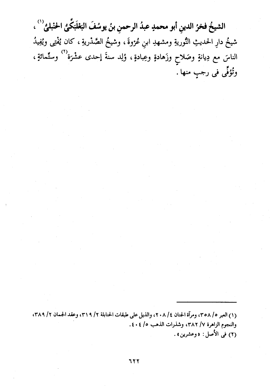 الشَّيْخُ فَخْرُ الدِّينِ أَبُو مُحَمَّدٍ عَبْدُ الرَّحْمَنِ بْنُ يُوسُفَ الْبَعْلَبَكِّيُّ الْحَنْبَلِيُّ