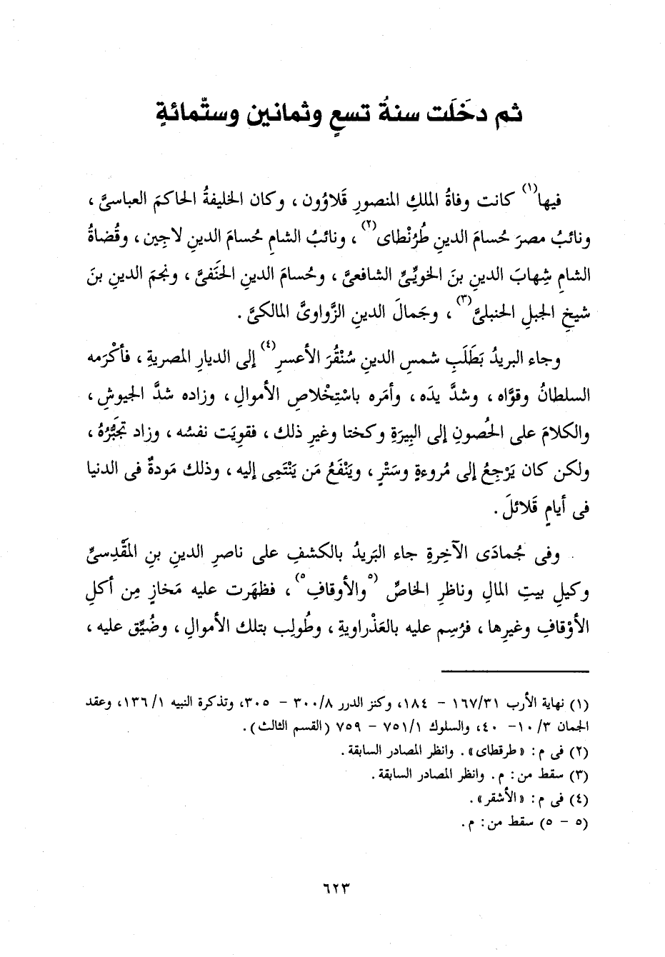 [ثُمَّ دَخَلَتْ سَنَةُ تِسْعٍ وَثَمَانِينَ وَسِتِّمِائَةٍ]