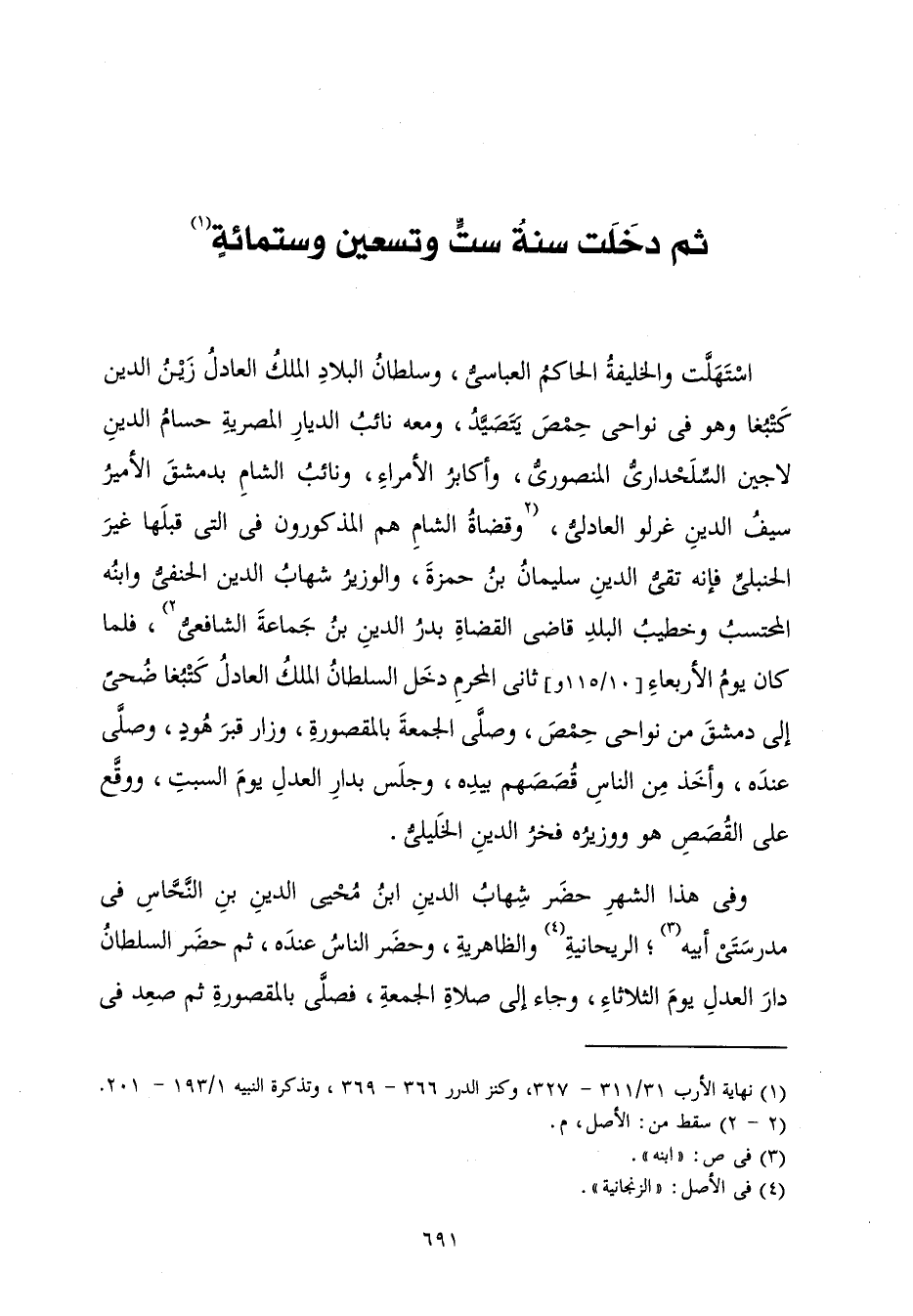 [ثُمَّ دَخَلَتْ سَنَةُ سِتٍّ وَتِسْعِينَ وَسِتِّمِائَةٍ]