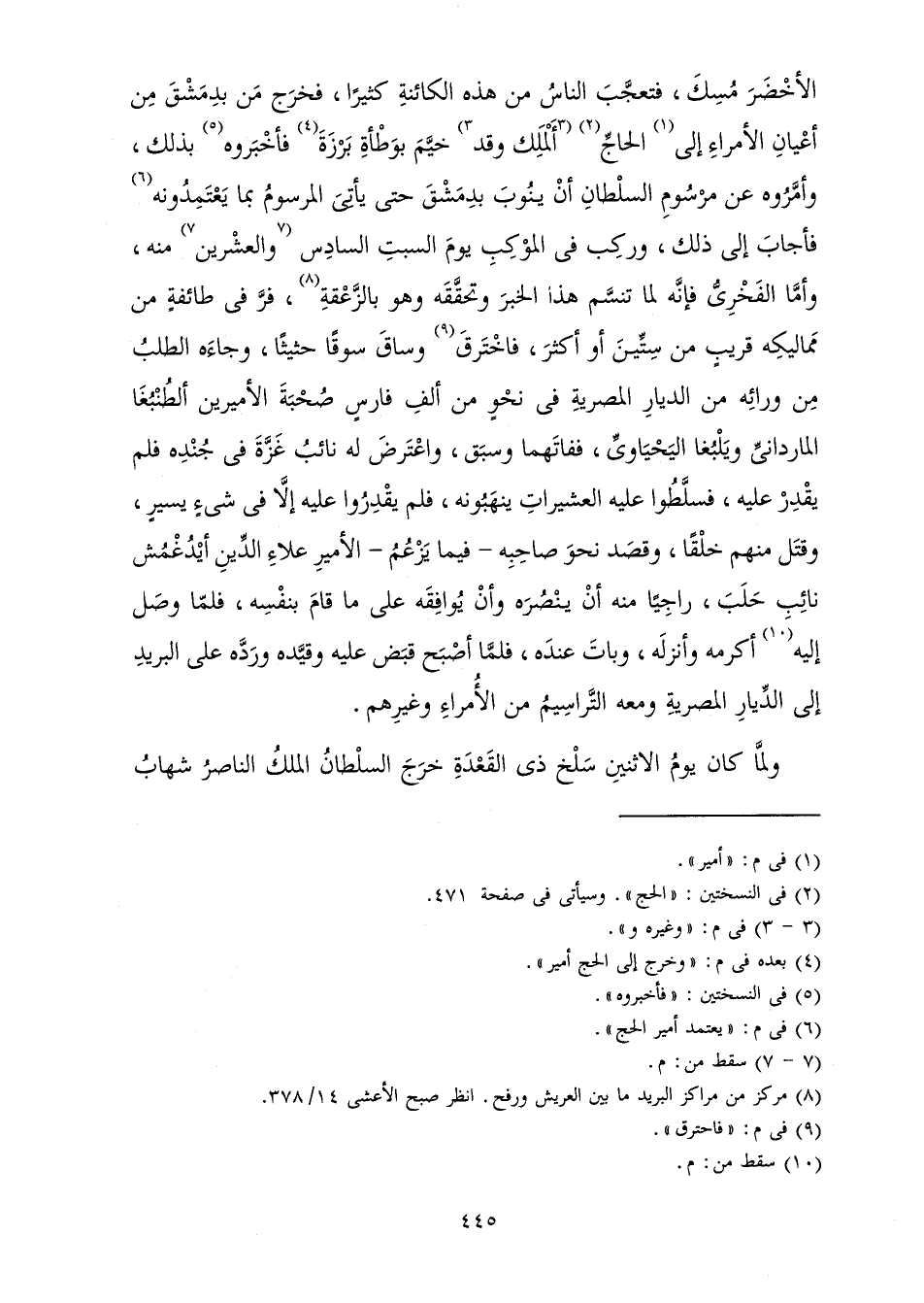 وَلَمَّا كَانَ يَوْمُ الِاثْنَيْنِ سَلْخُ ذِي الْقِعْدَةِ خَرَجَ السُّلْطَانُ الْمَلِكُ النَّاصِرُ شِهَابُ