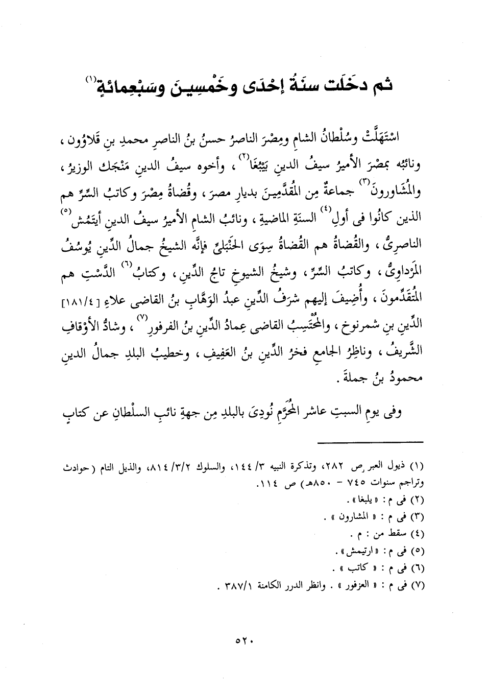 [ثُمَّ دَخَلَتْ سَنَةُ إِحْدَى وَخَمْسِينَ وَسَبْعِمِائَةٍ]