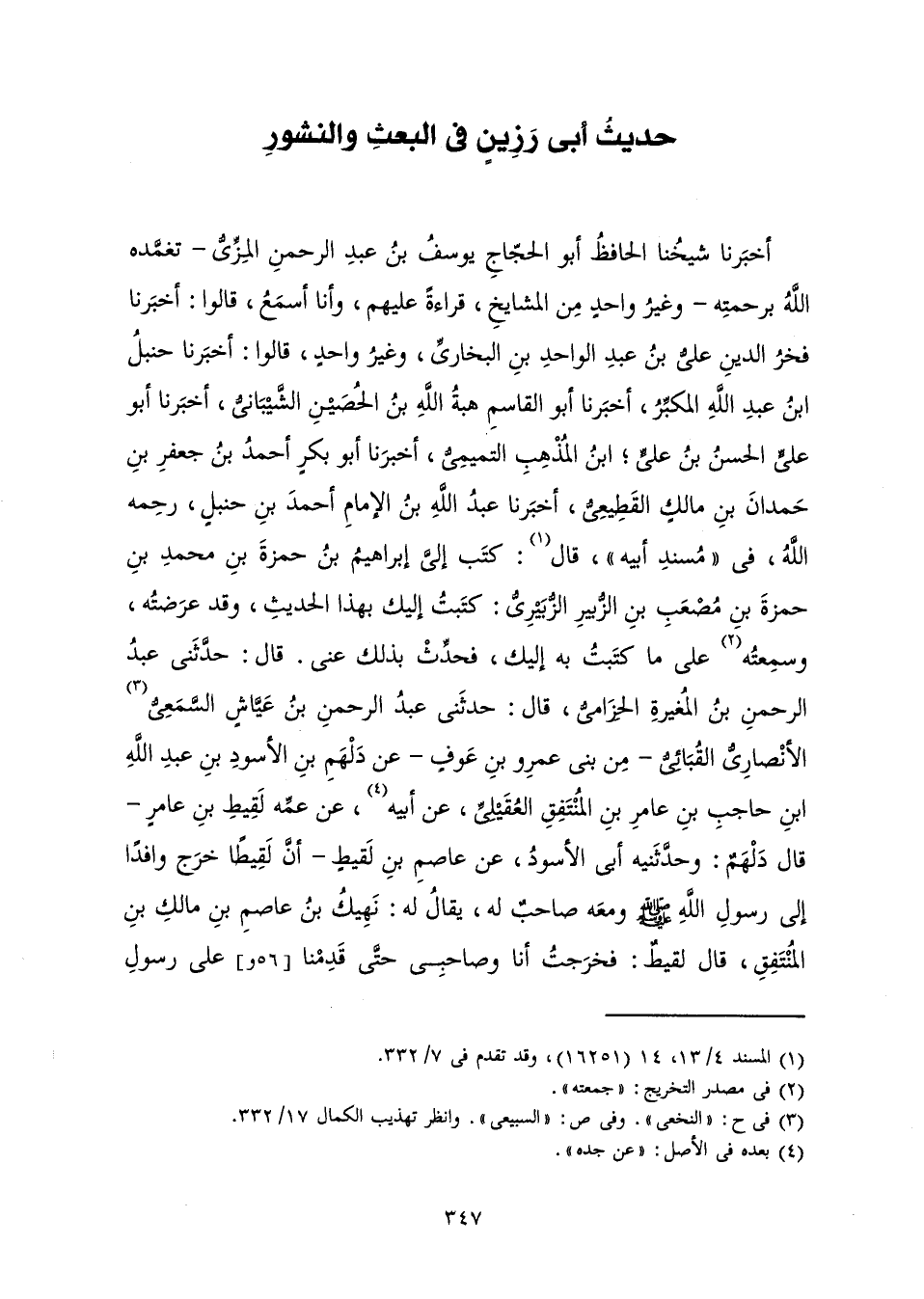 [حَدِيثُ أَبِي رَزِينٍ فِي الْبَعْثِ وَالنُّشُورِ]