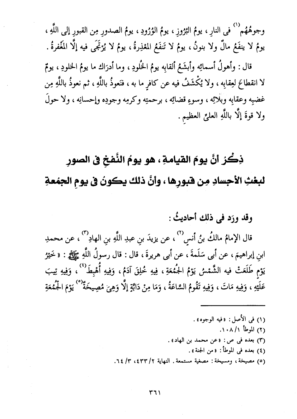 قَالَ الْإِمَامُ مَالِكُ بْنُ أَنَسٍ، عَنْ يَزِيدَ بْنِ عَبْدِ اللَّهِ بْنِ الْهَادِ، عَنْ مُحَمَّدِ بْنِ إِبْرَاهِيمَ، عَنْ أَبِي سَلَمَةَ، عَنْ أَبِي هُرَيْرَةَ، قَالَ: قَالَ رَسُولُ اللَّهِ صَلَّى اللَّهُ عَلَيْهِ وَسَلَّمَ " «خَيْرُ يَوْمٍ طَلَعَتْ فِيهِ الشَّمْسُ يَوْمُ الْجُمُعَةِ، فِيهِ خُلِقَ آدَمُ، وَفِيهِ أُهْبِطَ، وَفِيهِ تِيبَ عَلَيْهِ، وَفِيهِ مَاتَ، وَفِيهِ تَقُومُ السَّاعَةُ، وَمَا مِنْ دَابَّةٍ إِلَّا وَهِيَ مُصِيخَةٌ يَوْمَ الْجُمُعَةِ